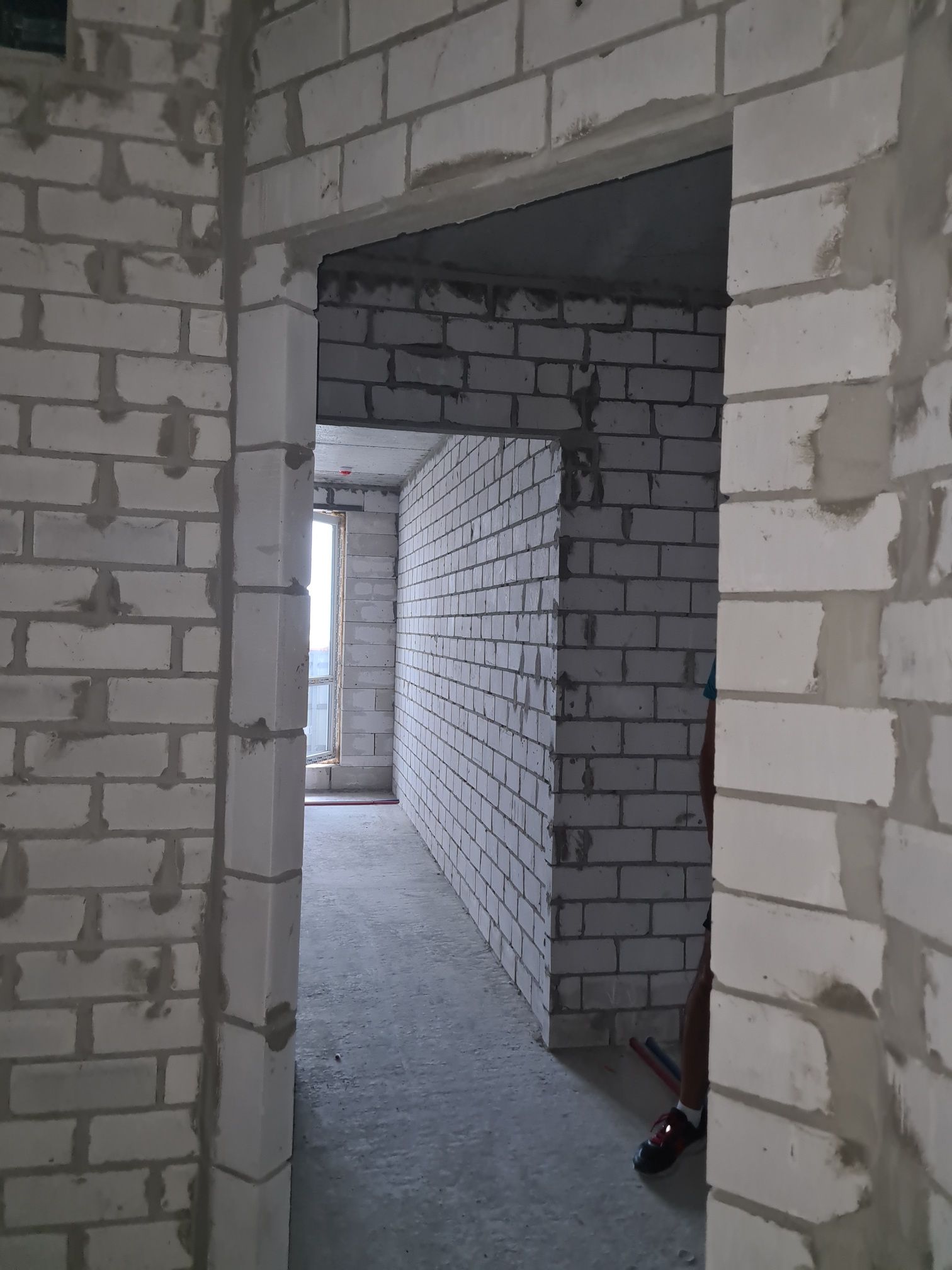 Після узгодження планувального рішення демонтували старі перегородки і звели нові з стільникового газоблоку. Планування включало: