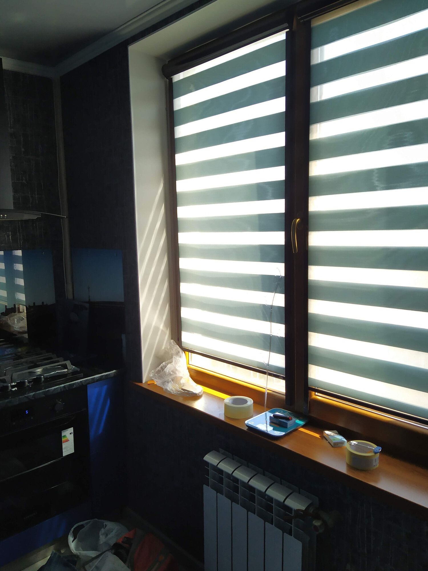 Оновлення торкнулися і вікон: у всій квартирі були встановлені нові металопластикові конструкції з ламінацією «лісовий горіх». На вікнах змонтовані blackout-штори, які дозволяють повністю затемнити кімнату при необхідності. Балкон також перетворився — замінена рама, виконана плиткова обробка підлоги, а нижня частина фасаду закрита непрозорою панеллю для додаткової приватності.