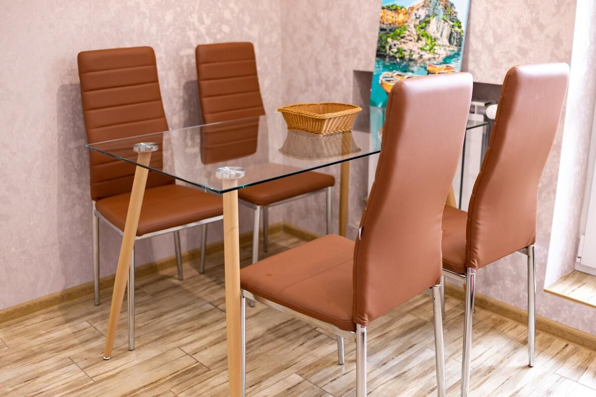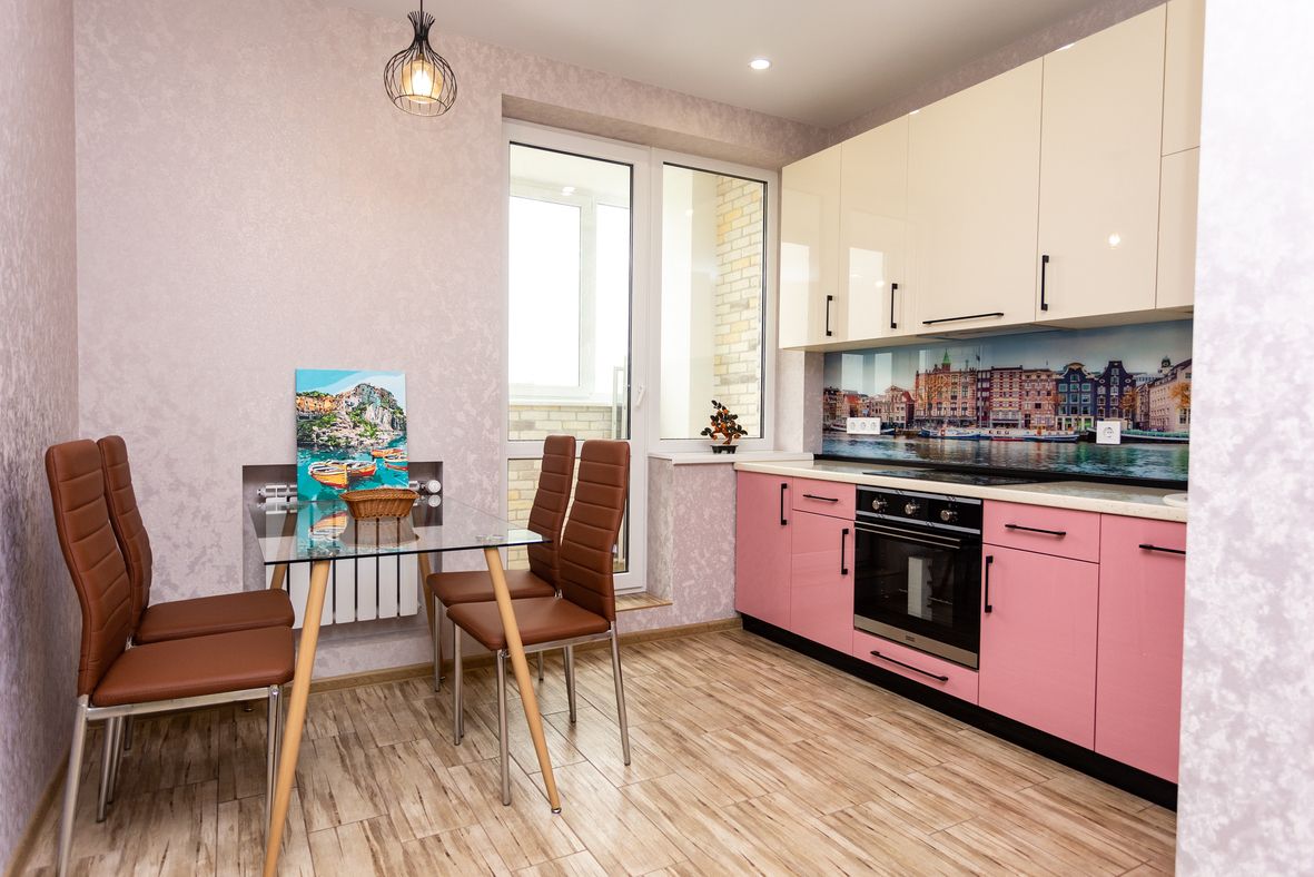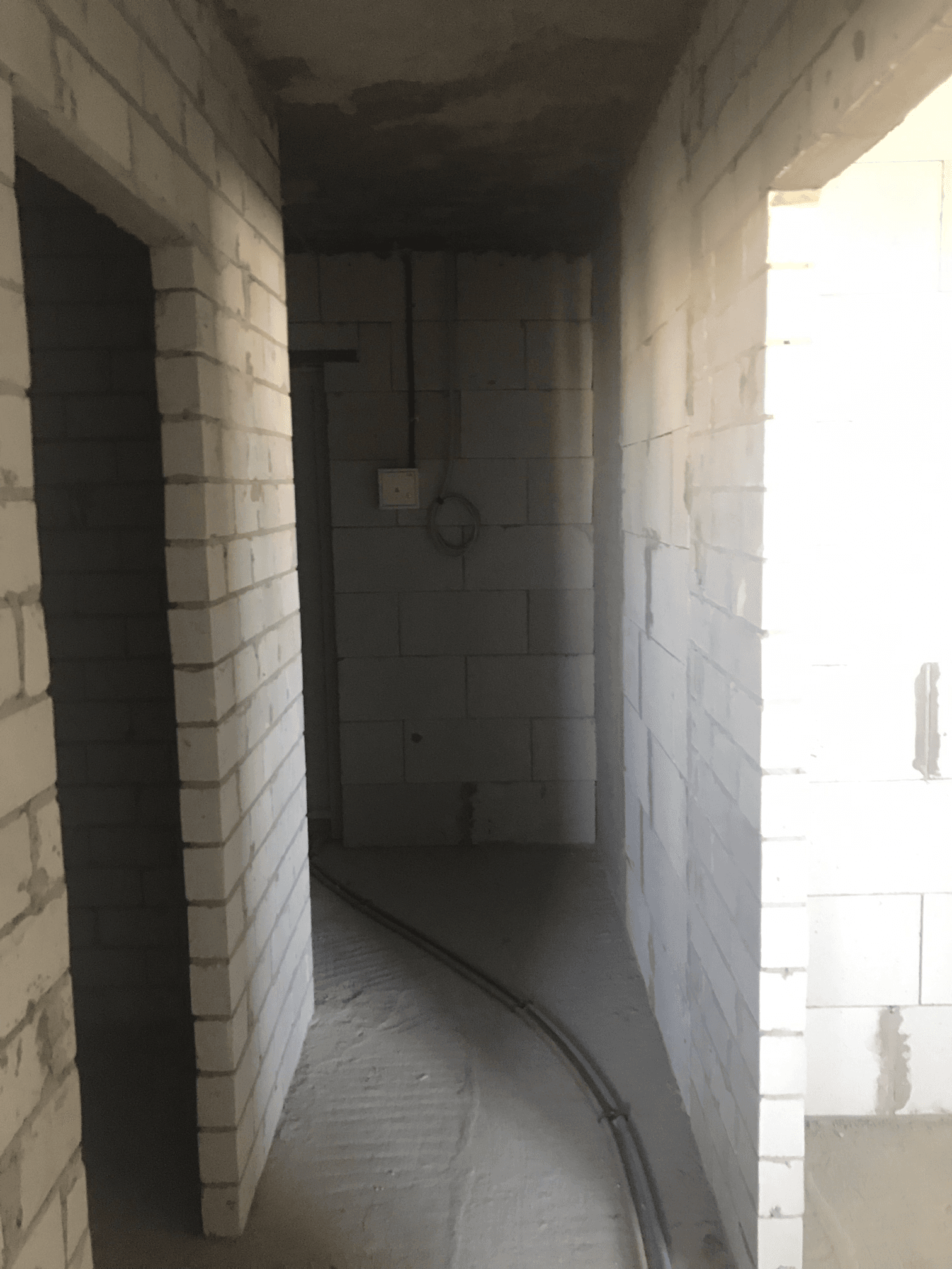 - Вместо традиционного дверного проёма на кухню выполнен сквозной портал.