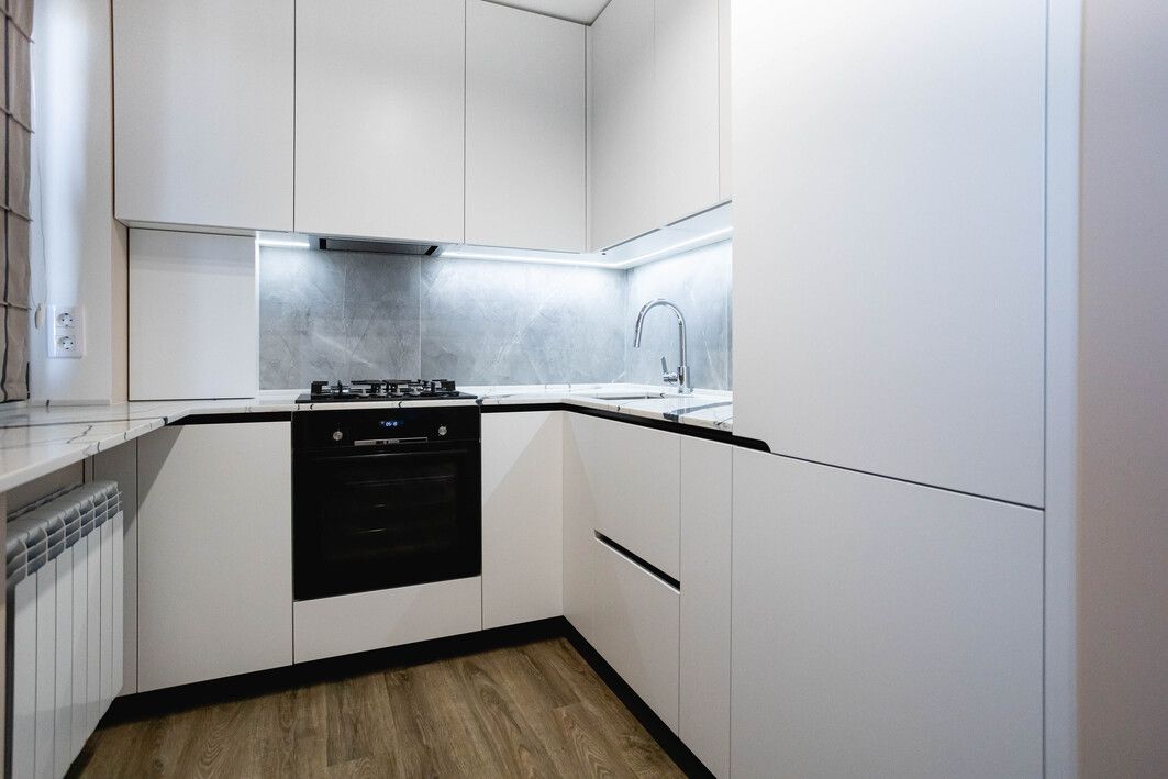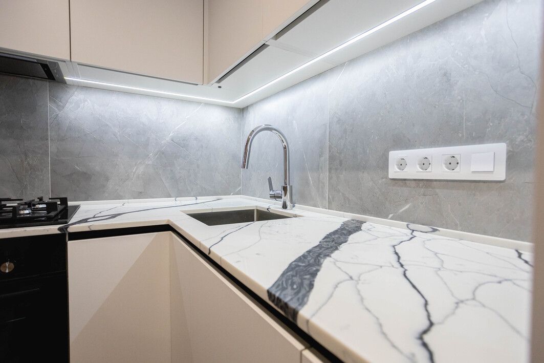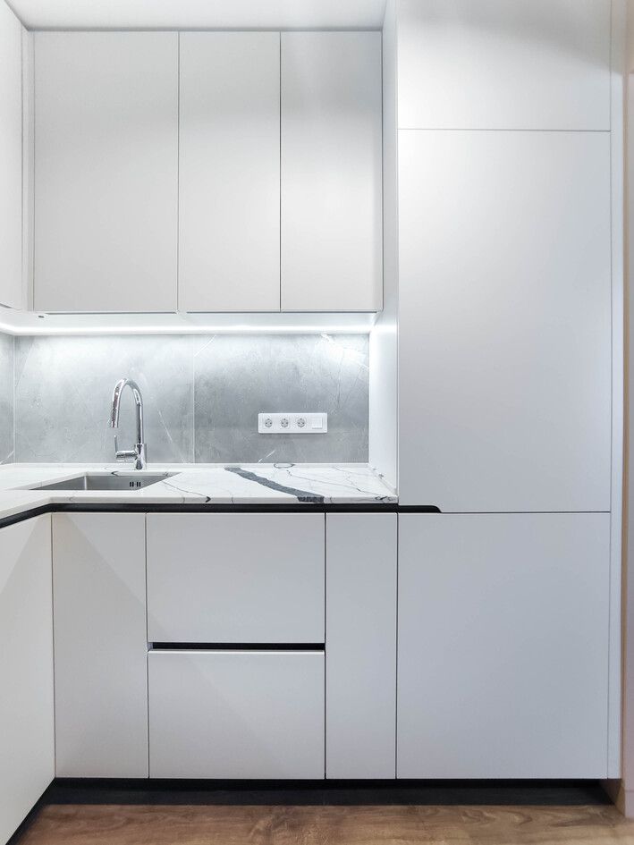 После устранения всех технических нюансов мы завершили работы, установили фурнитуру, осветительные приборы, сантехнику, рейки и подготовили квартиру под заселение.