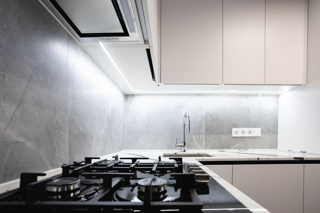 После согласования плана мы полностью освободили квартиру от старой отделки, демонтировали сантехкабину и вывезли весь строительный мусор. Одним из ключевых этапов стало устройство нового проёма в несущей стене — решение, которое позволило объединить пространство и сделать кухню более удобной. Все работы выполнялись строго по проекту и с соблюдением нормативов.