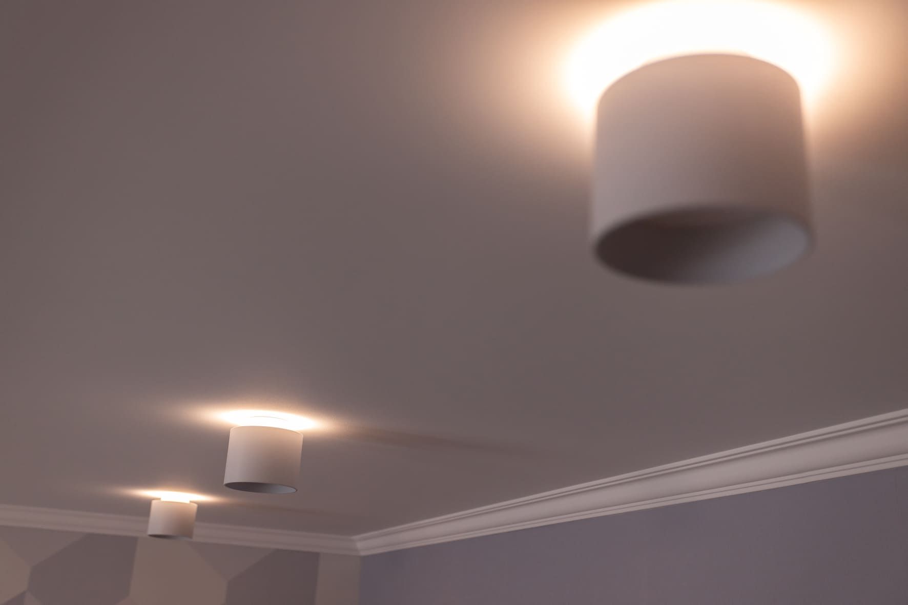 Встроенные точечные светильники, накладные LED-люстры и ночные светильники с датчиком движения — всё функционирует исправно.